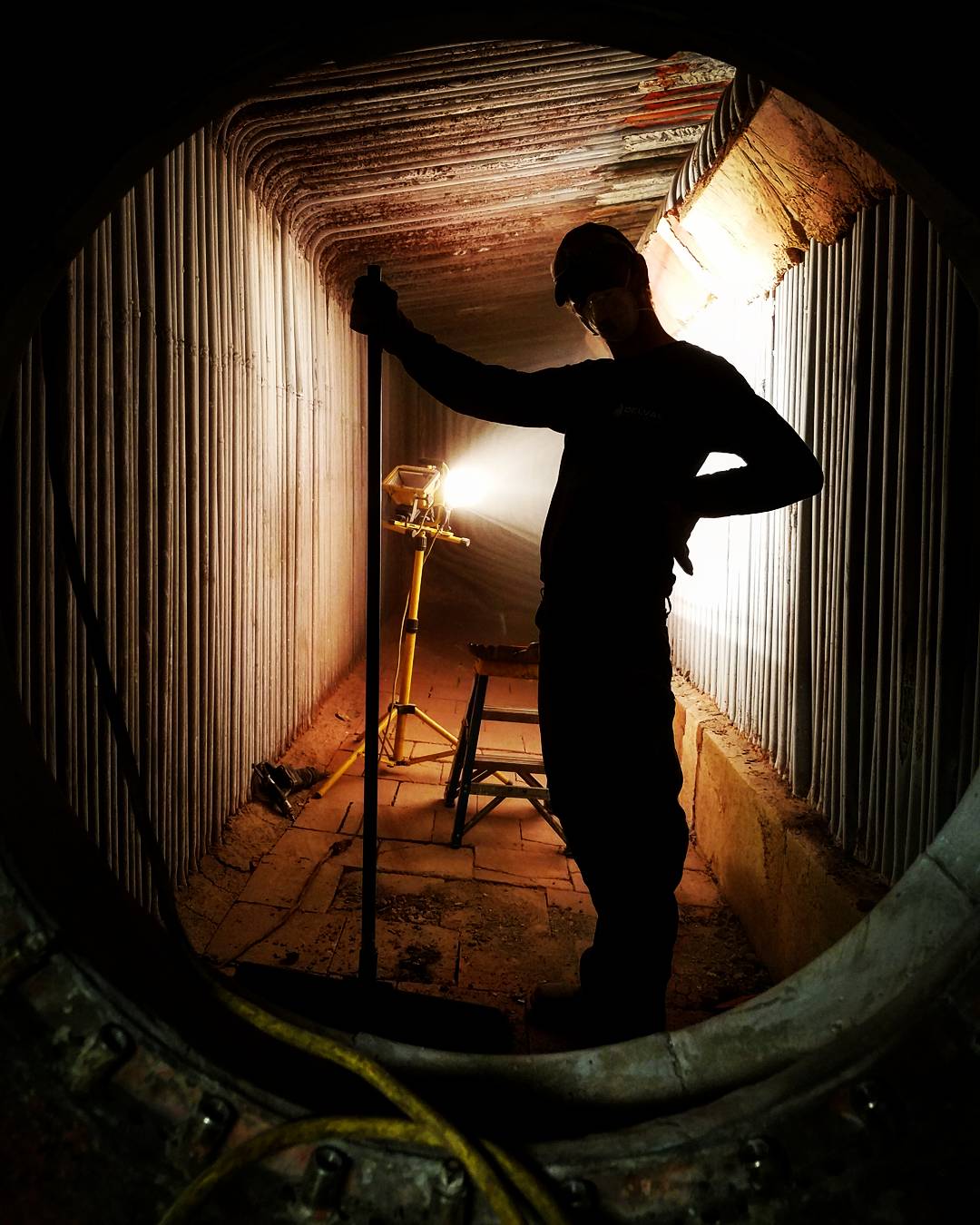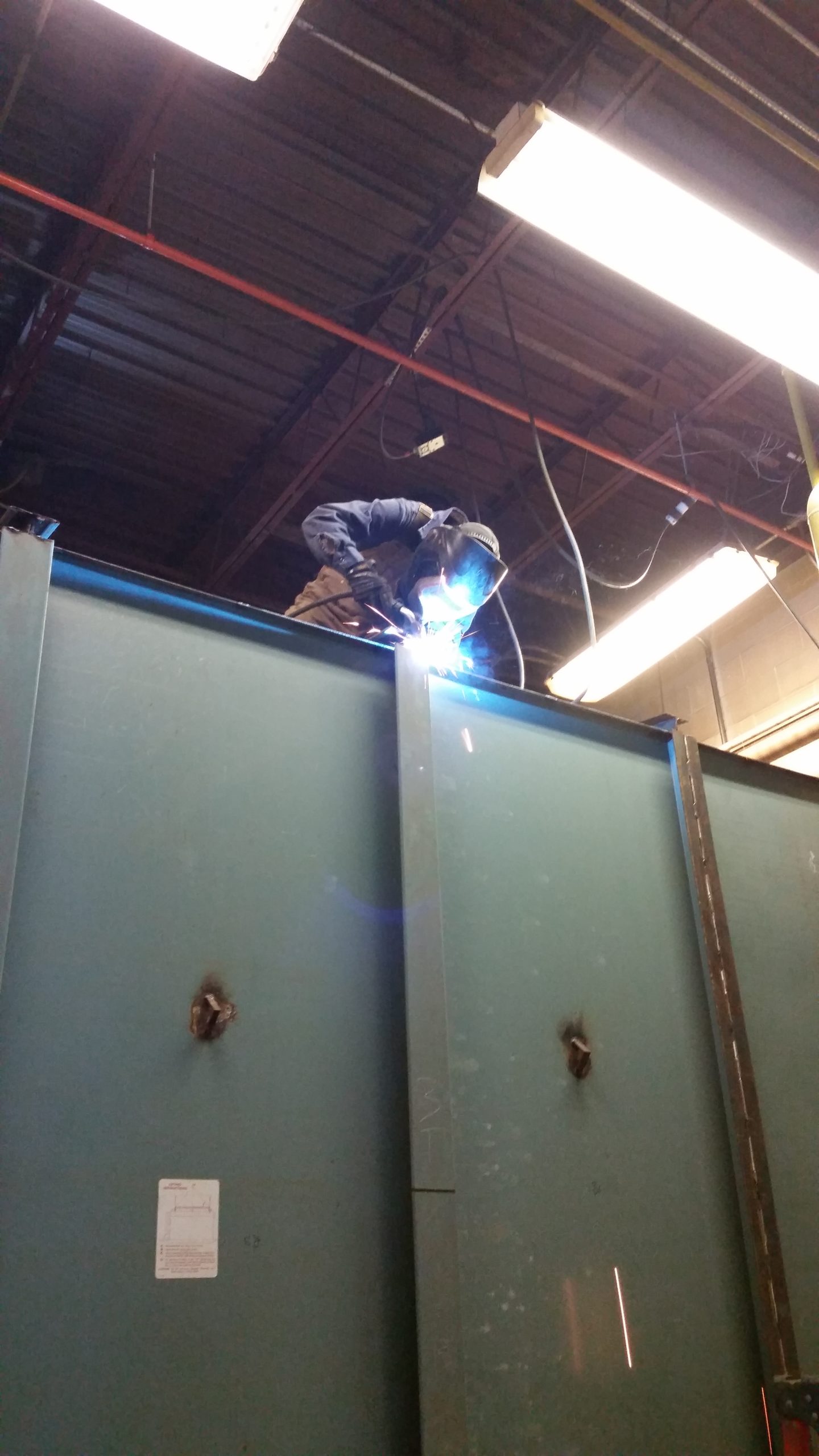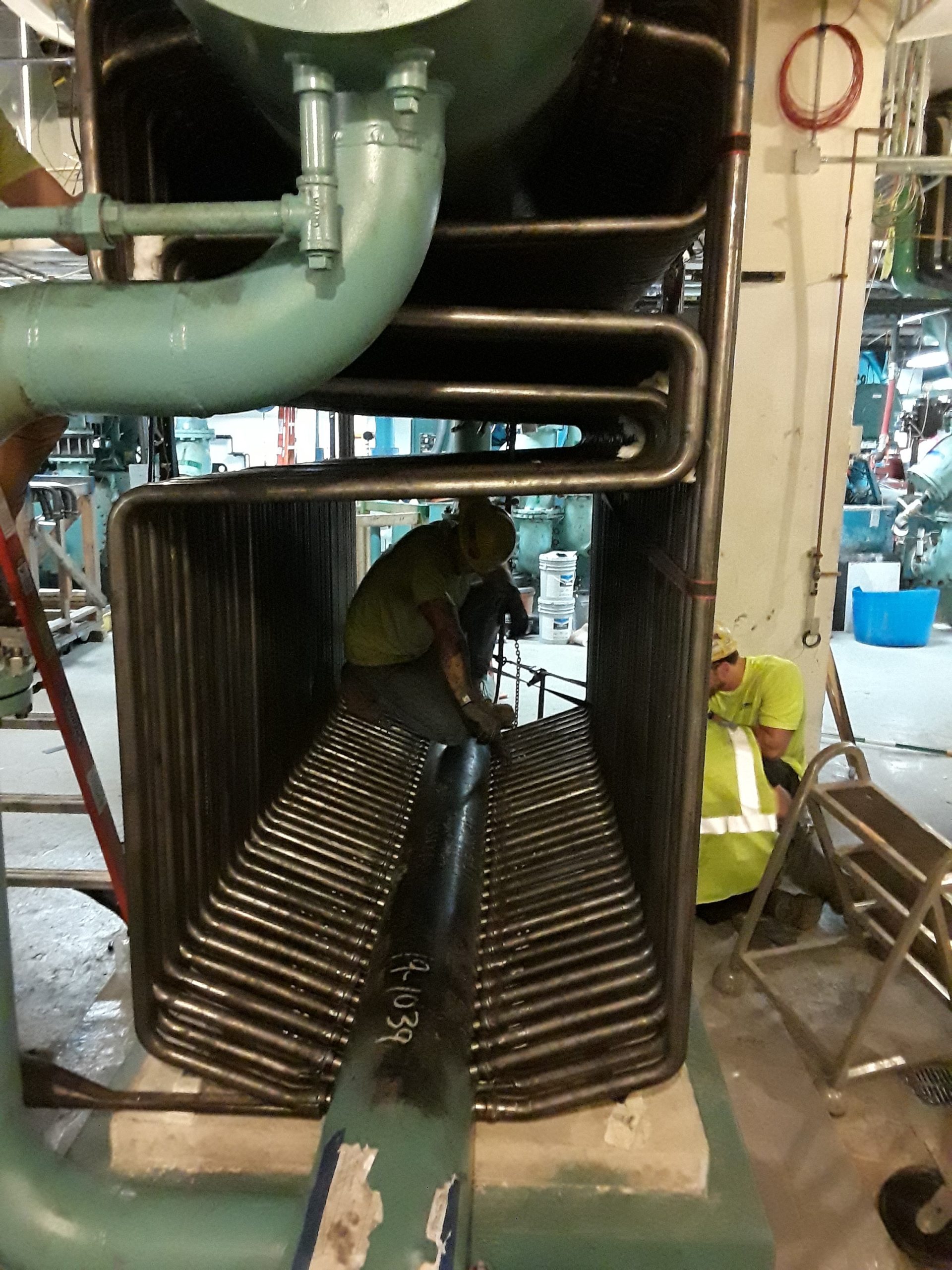 Vince, one of our welders from our Washington office, He had to wedge himself under a row of tubes in one of their giant water tubes to weld on a bend.