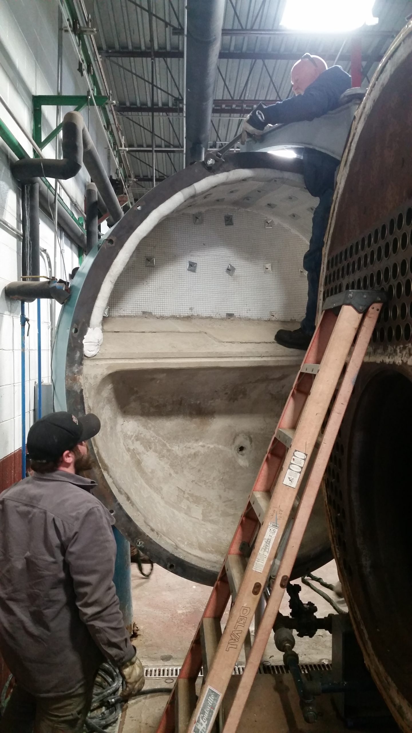 This is what it looks like after a day of fixing tube leaks, patching up refractory, and are in the process of sweeping up.