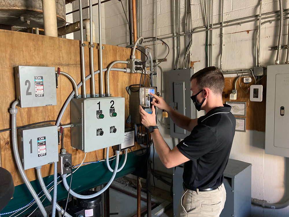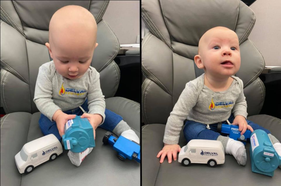 Little Atlas is getting hands-on just like his dad, Pete, who is a service technician here at Delval Equipment.